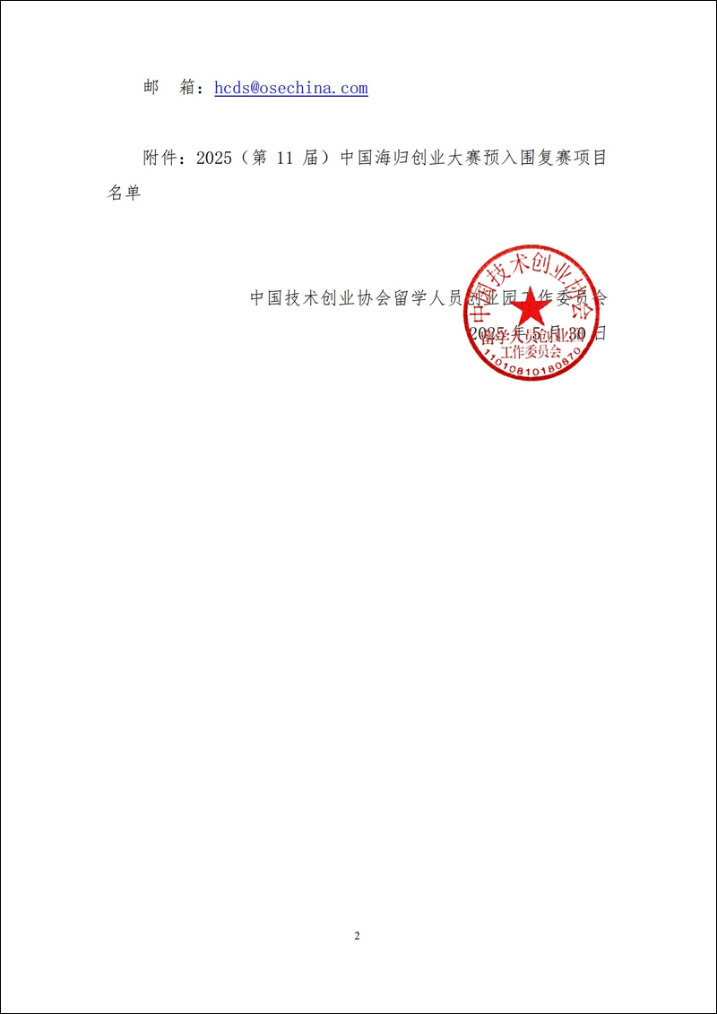 關于2025(第11屆)中國海歸創業大賽入圍復賽項目的公示